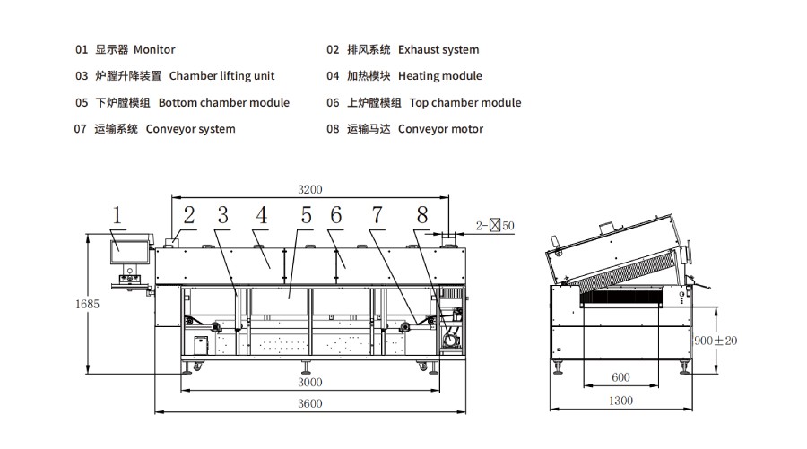 2.注明:根據產能要求,推薦溫區數量優先選擇:4溫區、5溫區、 8溫區、9溫區、10溫區、12溫區,可定制。
