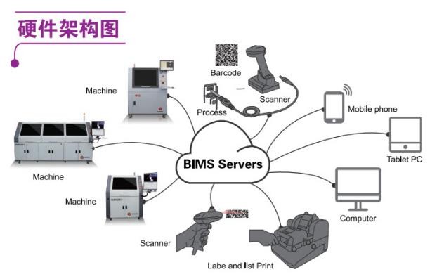 日東科技自主研發的BIMS系統是為滿足JIT(JustInTime)、BTO(面向訂單生產)等新型生產模式,及客戶、市場對產品的更高質量要求,采用數據采集引擎、云存儲、云計算等技術,集原料供應、生產計劃、過程管控、產品出貨、客戶追溯五大功能于一體的智能制造系統。分階段為企業實現信息集成、事務處理、智能制造,充分發揮企業信息化的作用,為企業實現工業4.0建立堅實的基礎。是SMT整線數據信息化管控的終極解決者與引領者。