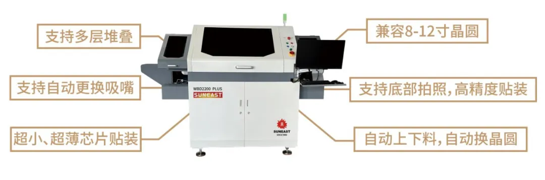 IC貼合機WBD2200 PLUS是通用型高精度IC貼合機,應對大批量wafer上料的貼裝產品,適用于SIP封裝、Memory Stack Die(存儲芯片堆疊)、CMOS 、MEMS等工藝。主要應用于車載電子、醫療電子、光電子、手機等行業領域。