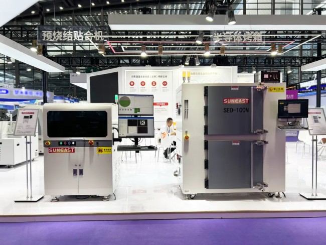 在本次展會上,日東科技展出了最新研發的半導體封裝設備,展示了在這一領域的持續創新與突破。自主研發的IC貼合機”和“預燒結貼合機”可實現高精度芯片貼合,應對大批量wafer上料的貼裝產品及功率模塊、電源模塊、新能源、智能電網等產業領域。此外,新推出的“半導體烤箱”和“快速固化烤箱”則在半導體封裝制程中提供了可靠的烘烤、固化與粘接解決方案。這些設備的展出不僅體現了日東科技強大的研發實力,也為客戶帶來了更多高效、穩定的生產選擇。