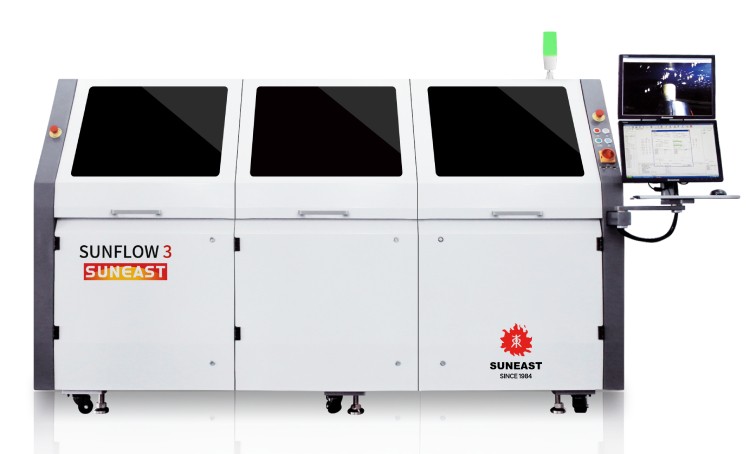 針對汽車板元件的焊接,具有空間小,焊點質(zhì)量高,免清洗性的特征,在助焊劑噴涂時選用免清洗助焊劑,通過控制助焊劑噴涂量,在保證噴涂效果良好的情況下,可以節(jié)省95%左右的助焊劑。預(yù)熱模塊采用分段式控制,自動校正溫度功能,既能滿足汽車板所需的高溫度,同時也可節(jié)約設(shè)備耗電量。電磁泵錫爐可以提供穩(wěn)定的高波峰,對焊點進行焊接,保證焊點的高質(zhì)量