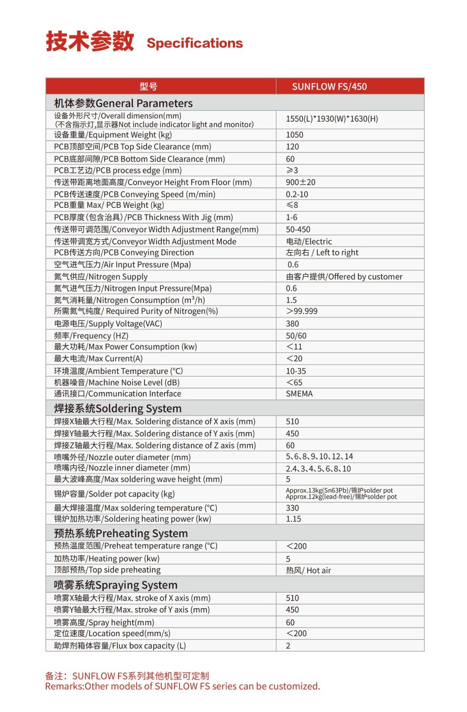 備注:SUNFLOWFS系列其他機型可定制