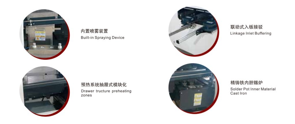 ●錫爐采用外熱式加熱,錫爐內膽采用鑄鐵制作,內表面防腐蝕處理,兩個低流速噴口、低氧化量設計;